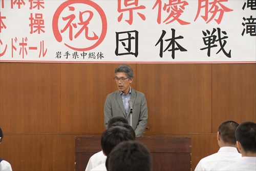 第71回岩手県中学校総合体育大会と第70回全日本中学校通信陸上競技県大会の結果報告会が7月22日、市役所で開催されました。