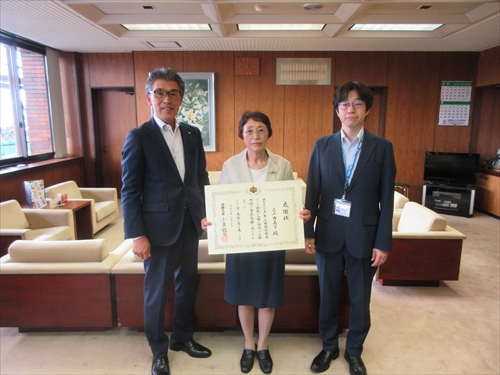 市長は、これまでの活躍に感謝の言葉を述べるとともに、長年の功績をたたえました。