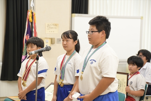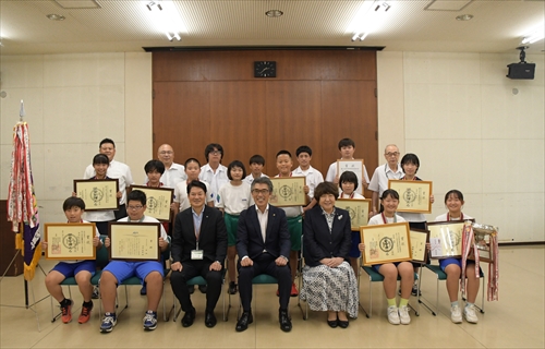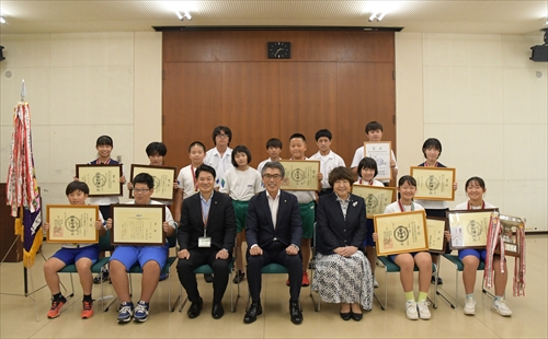 県大会で活躍し、全国・東北大会に出場する滝沢相撲クラブ所属選手15人が7月31日、市長を表敬訪問しました。