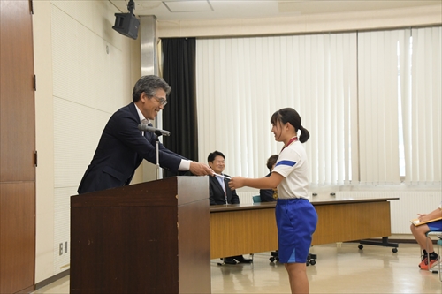 市長は「県大会での活躍おめでとうございます。全国大会や東北大会では、勇気と感動を与えられるような試合を期待しています」と激励しました。