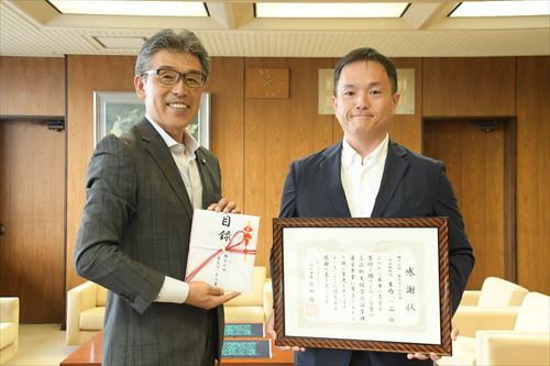 ホーム 写真で見るニュース 2024年 地域の発展を願い~㈱東北ターボ工業が寄付 地域の発展を願い~㈱東北ターボ工業が寄付 ページID:02915 更新日: 2024年09月06日 (令和6年9月6日掲載) 企業版ふるさと納税の贈呈式が8月29日、市長室で行われました。 今回は、㈱東北ターボ工業(本社:盛岡市羽場)より交流拠点複合施設管理運営事業に対し寄付がありました。 同社は地域貢献のため、企業版ふるさと納税を積極的に実施しており、生内一晶(おぼないいっせい)代表取締役から市長に目録が贈られました。この寄付はビッグルーフ滝沢で行われる事業に活用されます。 (地域づくり推進課作成) 前のページに戻る トップページに戻る