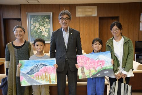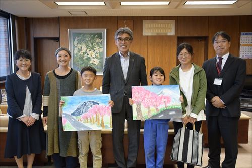 MOA美術館第35回岩手県北児童作品展に入賞した、柳沢小学校4年渡辺一休(わたなべいっきゅう)さん、新井桜(あらいさくら)さんが10月25日(金)、市長へ表敬訪問しました。渡辺さんは滝沢市長賞を、新井さんは滝沢市教育長賞を受賞しました。
