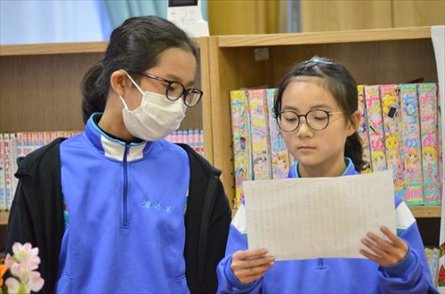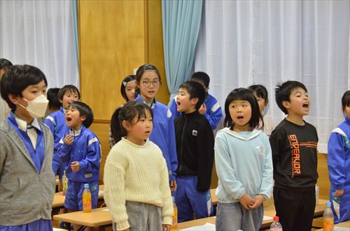 同クラブ父母会の藤原沙織(ふじわらさおり)会長からの挨拶、来賓からの祝辞の披露の後、同クラブの児童を代表して、東小学校5年の川平暖(かわひらのん)さんと伊藤千加(いとうちか)さんが感謝のことばを述べました。