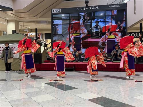 当日は県内から4つの団体が集まり、午後に2公演ステージで演舞を披露しました。
