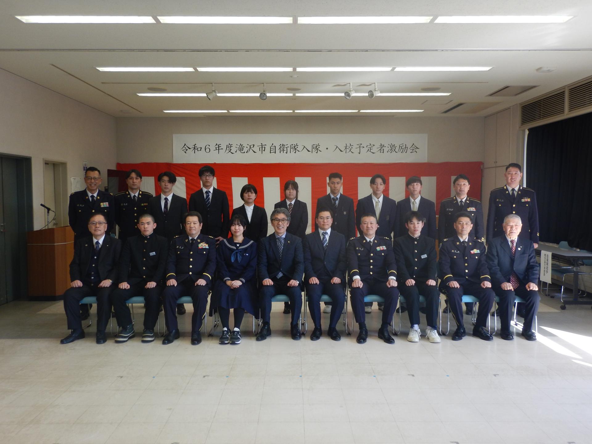 入隊・入校予定者14人のうち、この日は11人が出席。市長は「自衛隊員は地域の安全安心に欠くことのできない存在。地域に寄り添い、頼られる存在として活躍されることを期待しています」と激励しました。