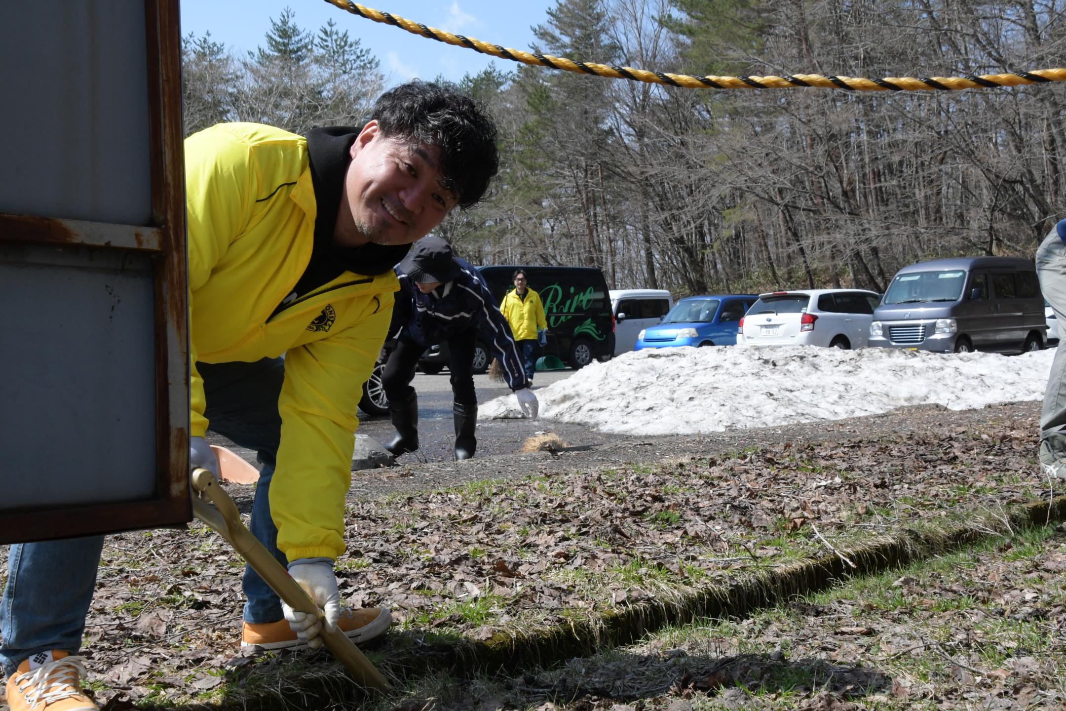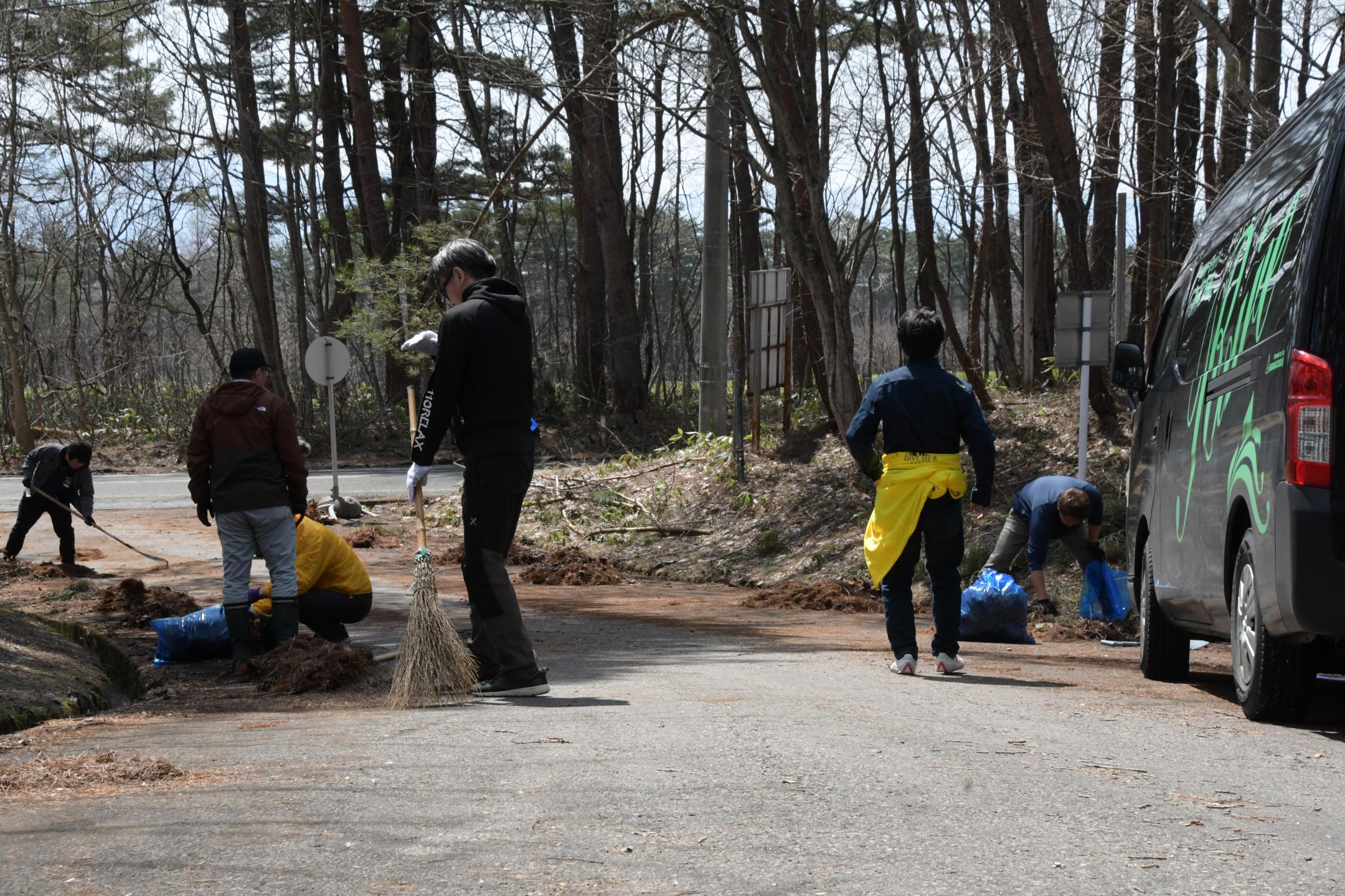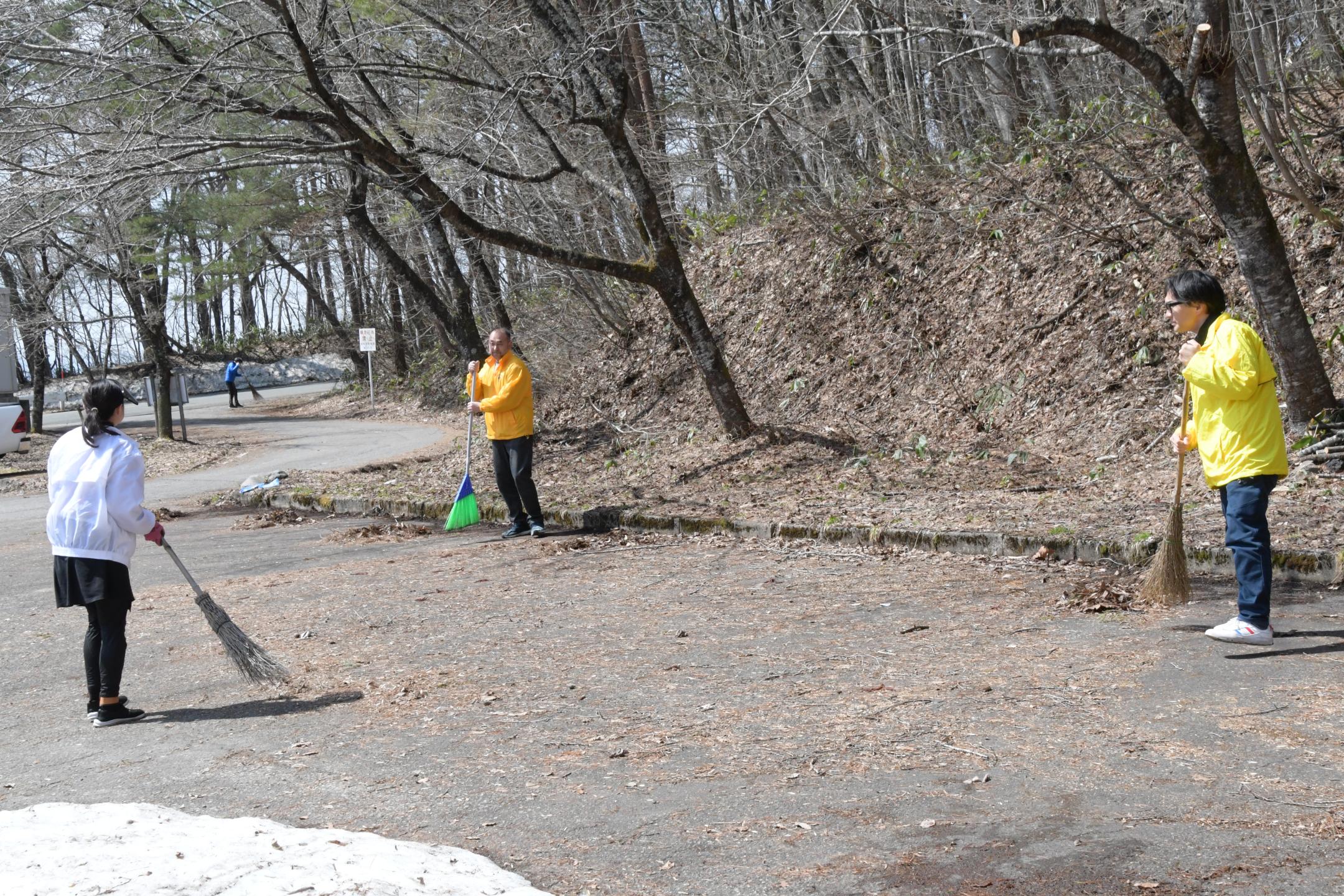 滝沢ライオンズクラブの会員による清掃活動が4月17日、鞍掛山登山口で実施されました。