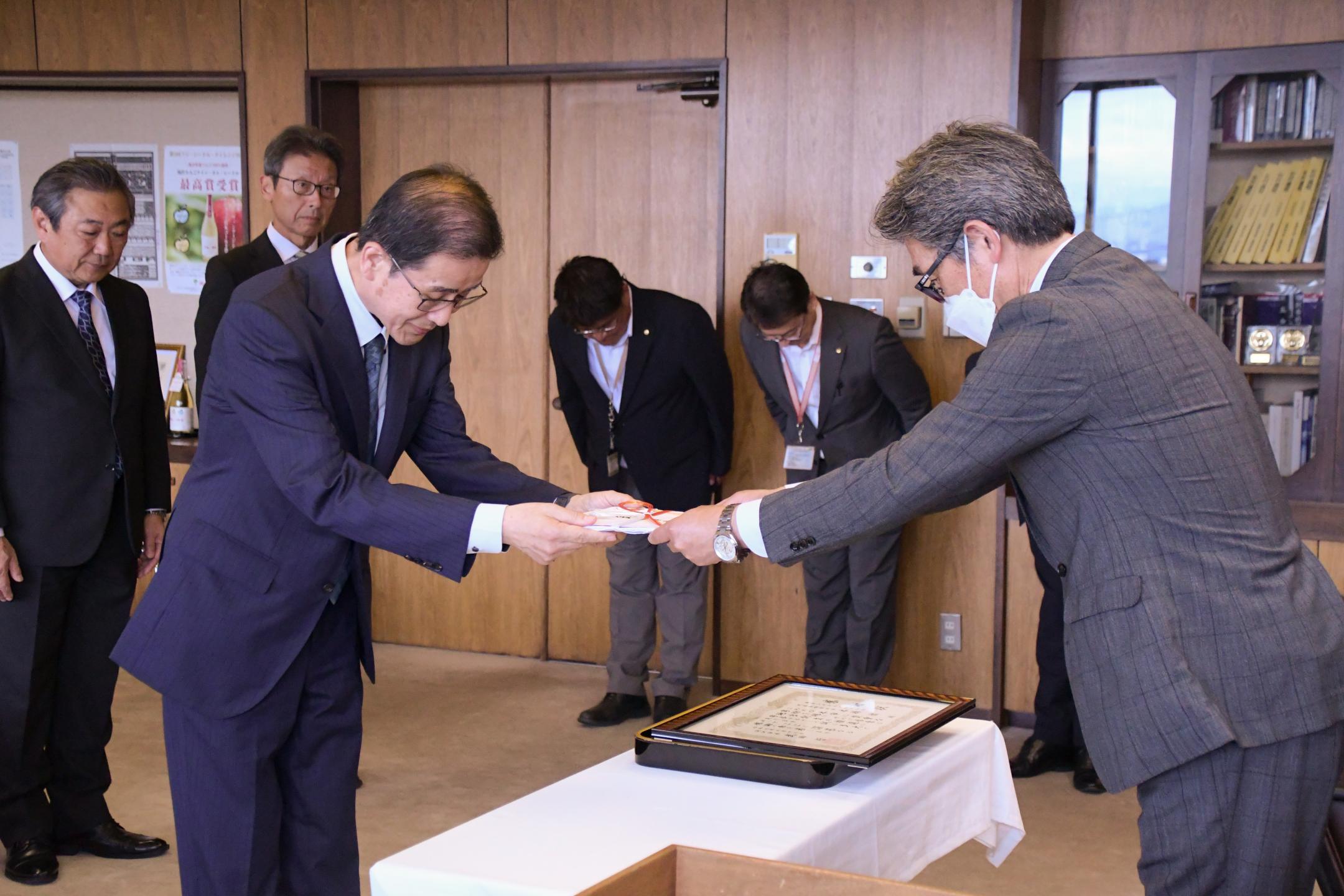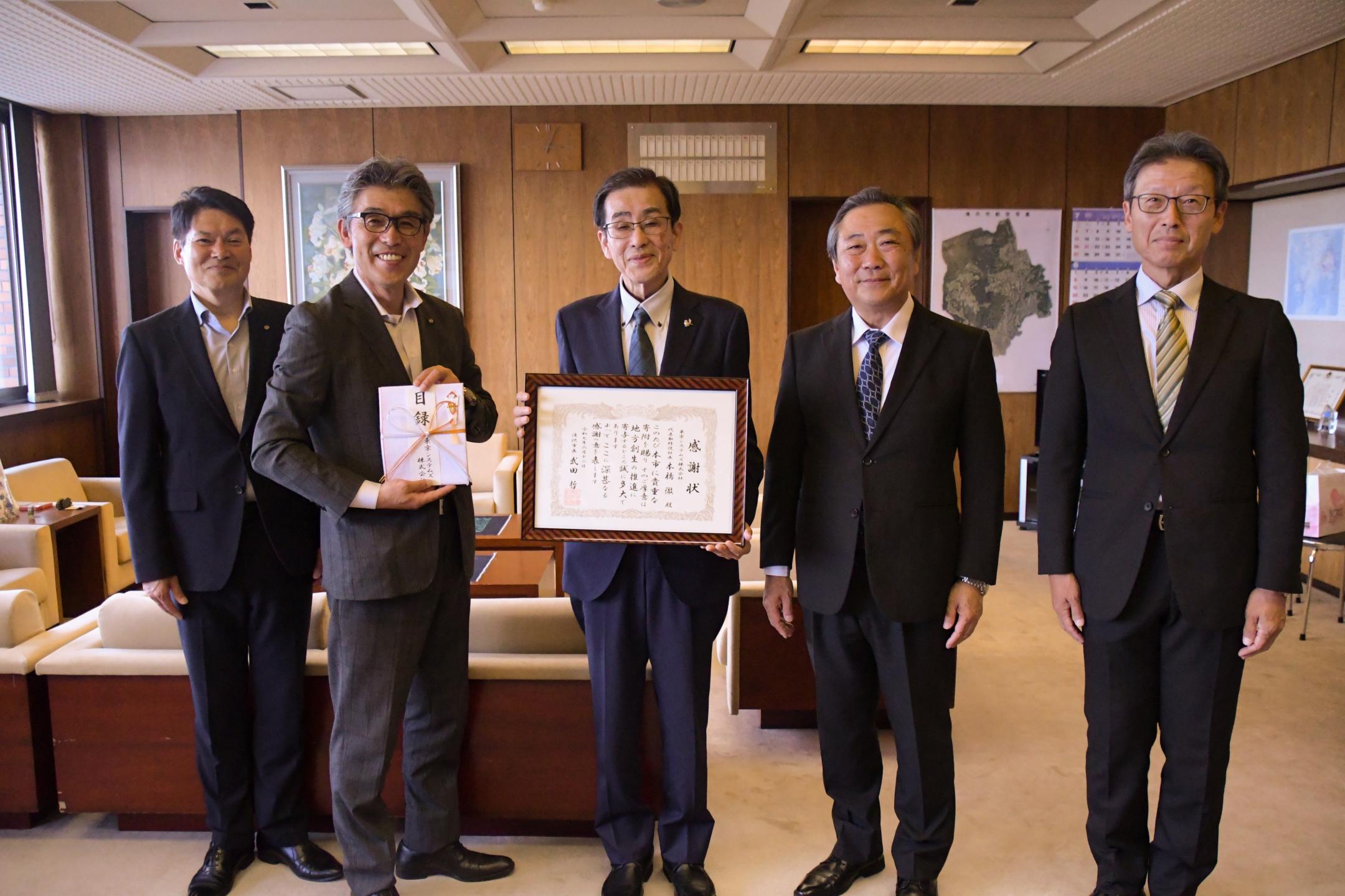 企業版ふるさと納税の贈呈式が6月12日、市長室で行われました。