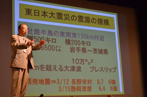総務省防災意識向上プロジェクト講師などを務める山田修生(やまだのぶお)氏を講師に迎え、マグニチュード9.0の脅威「超高齢社会の大地震に備えよう」と題した講話を聴講しました。