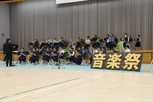 当日はあいにくの雨模様のため、タキソウ音楽祭としては初の屋内での開催となりましたが、市内外の小学校、中学校、高校の吹奏楽部6校が演奏を披露しました。