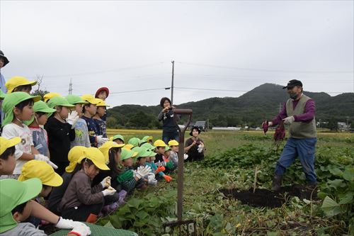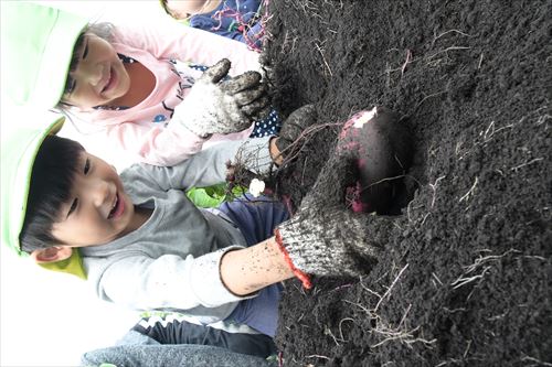 ホーム 写真で見るニュース 園児らが収穫体験~大きく実ったサツマイモ 園児らが収穫体験~大きく実ったサツマイモ ページID:02906 更新日: 2024年10月04日 (令和6年10月4日掲載) 元村保育園の園児約40人が9月25日、滝沢外山地内の駿河正典(するがまさのり)さんの畑でサツマイモの収穫を体験しました。 このサツマイモは5月に園児たちが定植したものです。しっかり育った大きなサツマイモを見て、園児たちからは歓声と驚きの声が上がっていました。 参加した園児たちは、大きく育ったサツマイモに悪戦苦闘しつつも、みんで協力しながらたくさん収穫していました。 (たきざわ魅力発信室作成) 前のページに戻る トップページに戻る