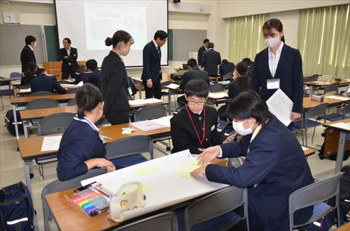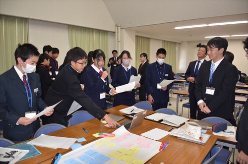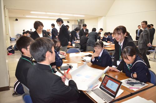 参加者は、市教育委員会所属の指導主事による講話「生徒会リーダーの心構え」や市商工会青年部所属の佐藤亮太(さとうりょうた)さんと佐々木優(ささきすぐる)さんによる講話「滝沢市の活性化と魅力の発信」たきざわ地域人材デザイナーとの連携・協働によるタブレットを活用した協議「中学生にとって制服とは」などを通じて交流を深めました。