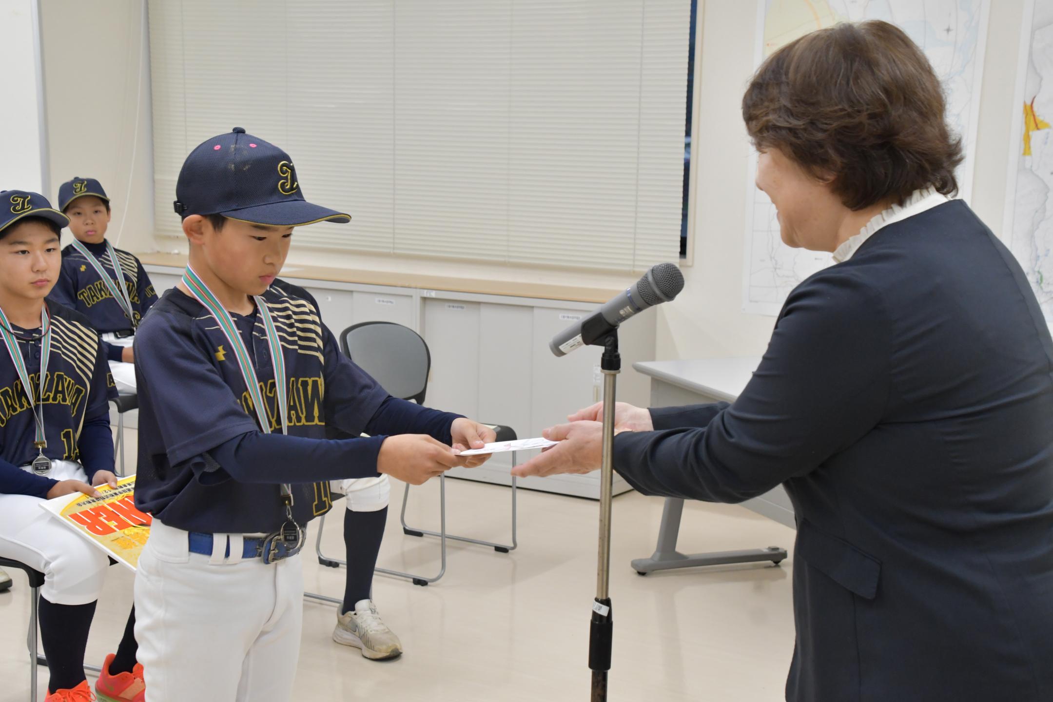 西日本選抜学童軟式野球倉敷大会へ市選抜として出場する選手25人が11月4日、教育長を表敬訪問しました。
