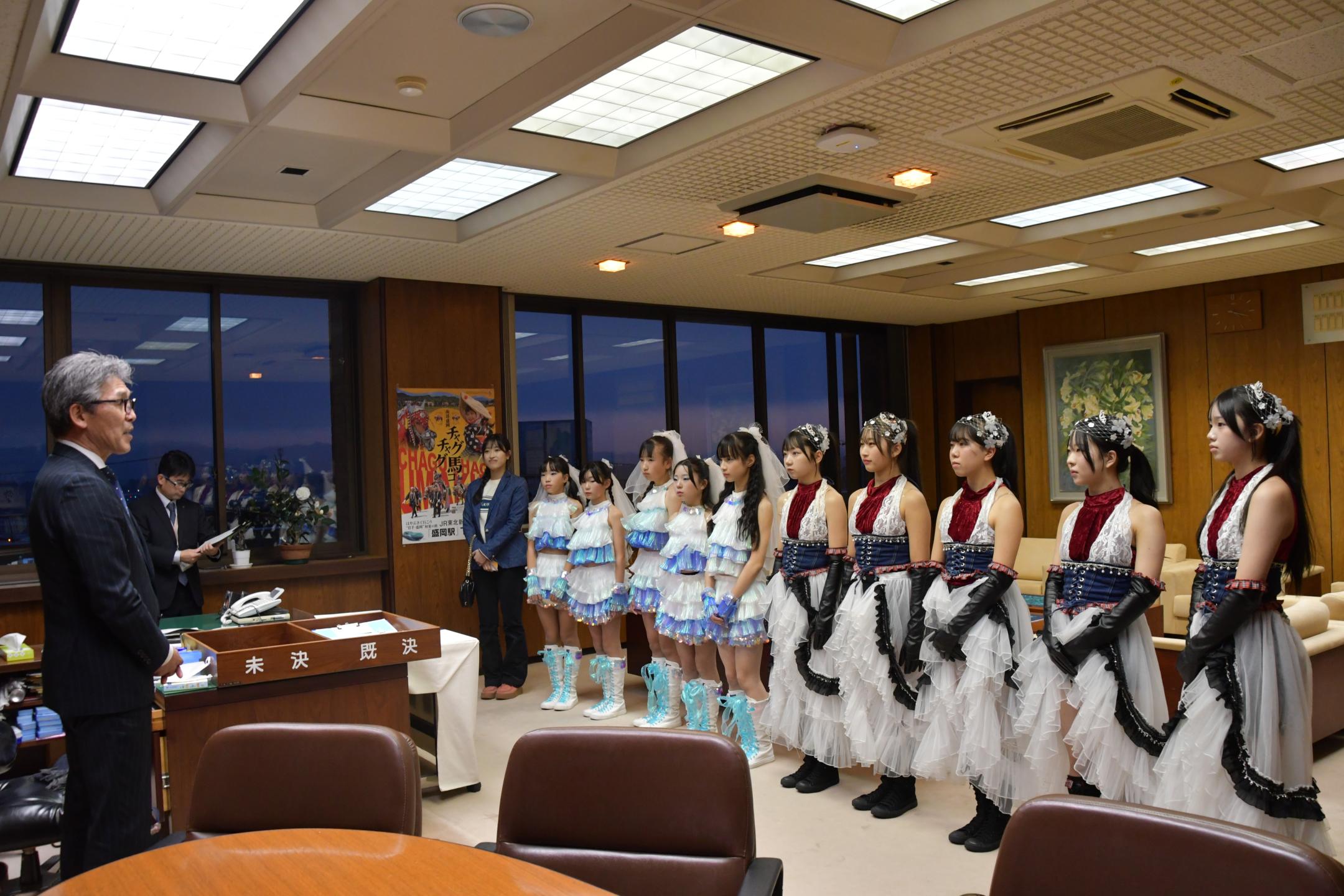 市長は「いつも夜遅くまでスタジオの明かりがついているのを見ていました。練習の成果を大いに発揮できた結果だと思います。おめでとうございます」とその功績をたたえました。