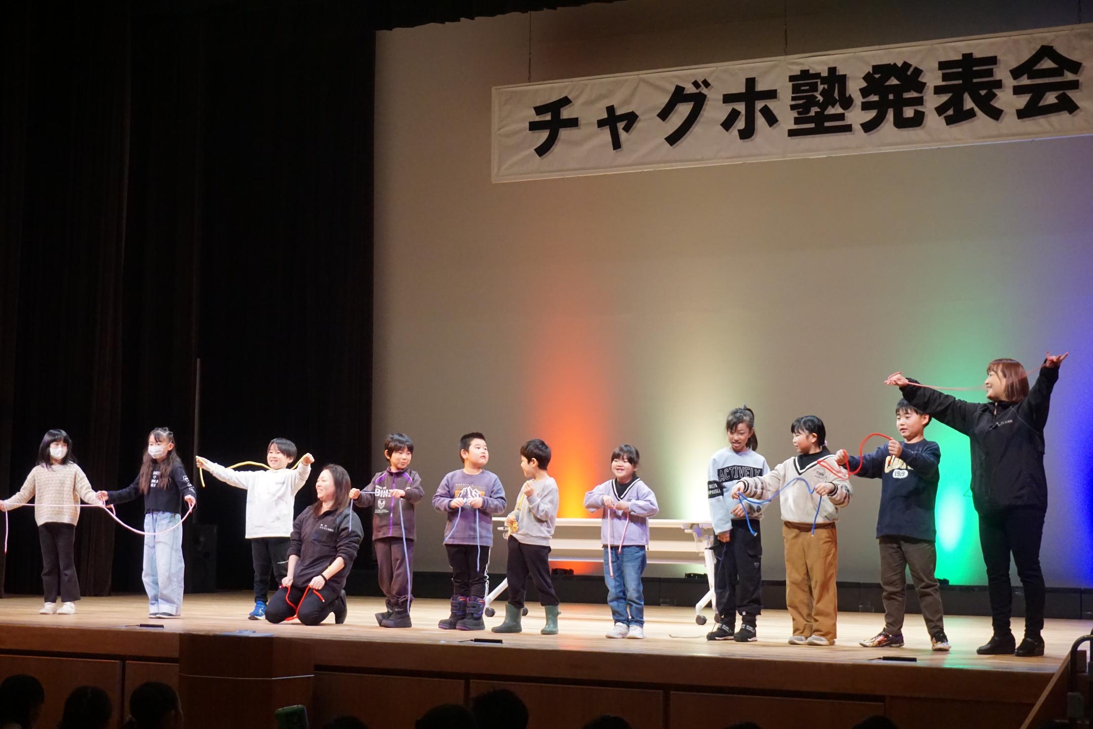 放課後子ども教室「チャグホ塾」の発表会が2月14日、滝沢ふるさと交流館で行われ、塾生が1年間の学びや体験の成果を披露しました。