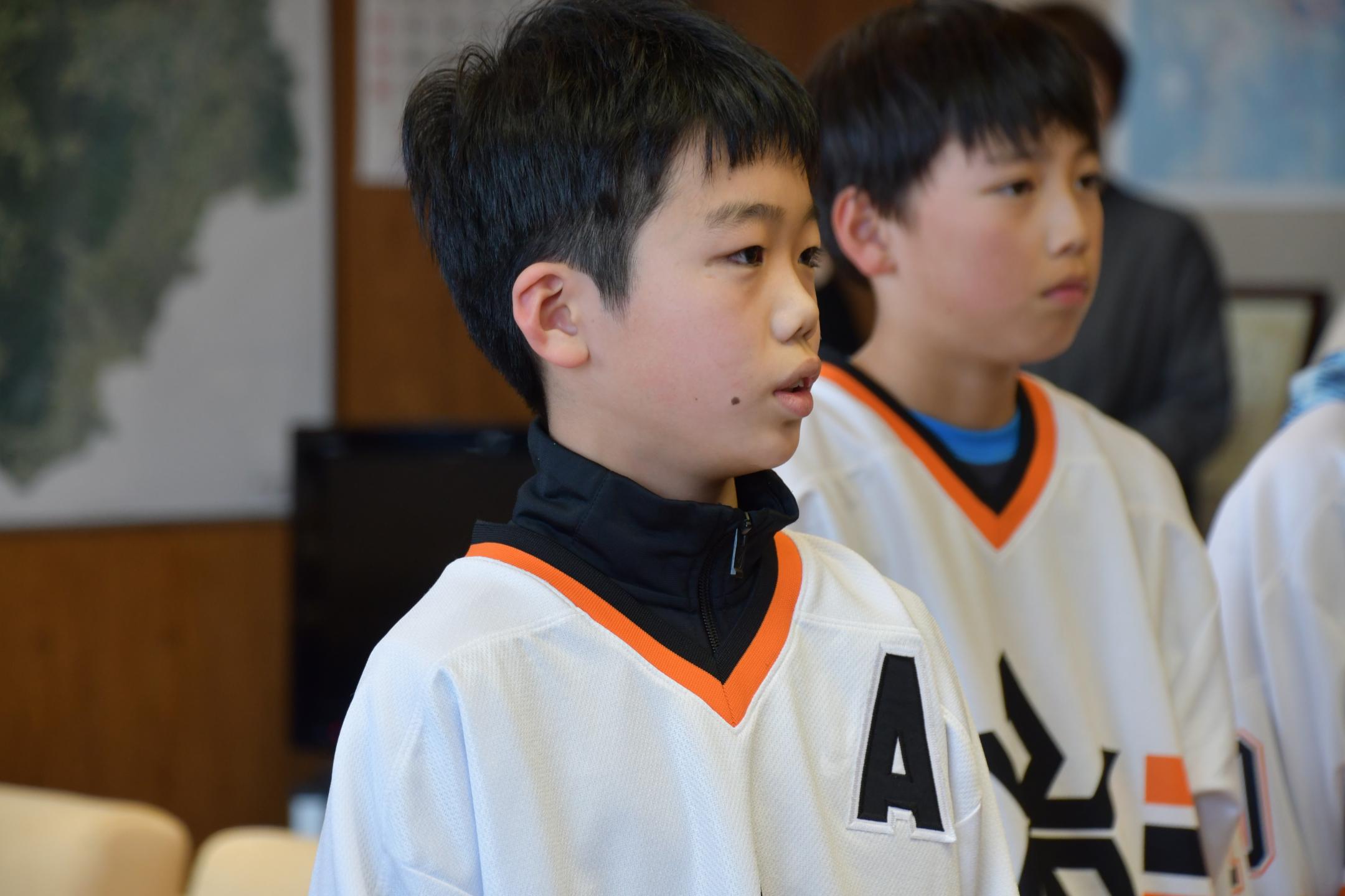 アイスホッケー県選抜に選出された小学生4人が3月16日、市長を表敬訪問しました。