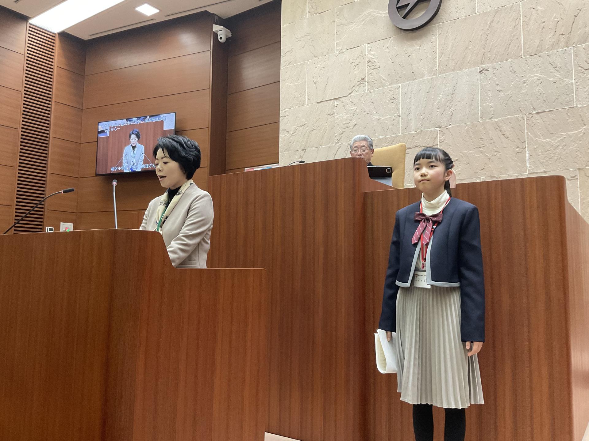 今回は、市内小学校に在籍する児童とその保護者の9組18名の皆さんが市民議会議員となり、テーマ『やさしさに包まれた滝沢』について、さまざまな思い、意見を発表していただきました。